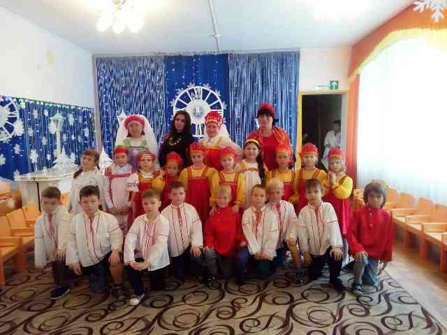 В гости к воспитанникам с шутками-прибаутками пришли ряженые — Цыганка (В.А. Митрофанова, воспитатель), Лиса (М.А. Жаркова, учитель-дефектолог), Медведь (Г.М. Слепужникова, воспитатель), Баба-Яга (Л.Б.Жданкина, инструктор по физической культуре), Домовенок Кузя (С.А.Яковлева, педагог дополнительного образования), Коляда (Н.М.Тишина, воспитатель). Приход ряженых приносит хозяевам счастье, здоровье, благосостояние на весь год. Гостей вместе с детьми встретили Хозяюшки (Н.В.Пахомова, А.И. Индыченко воспитатели; Сачавская С.А., педагог дополнительного образования; Минаева Т.М., музыкальный руководитель).