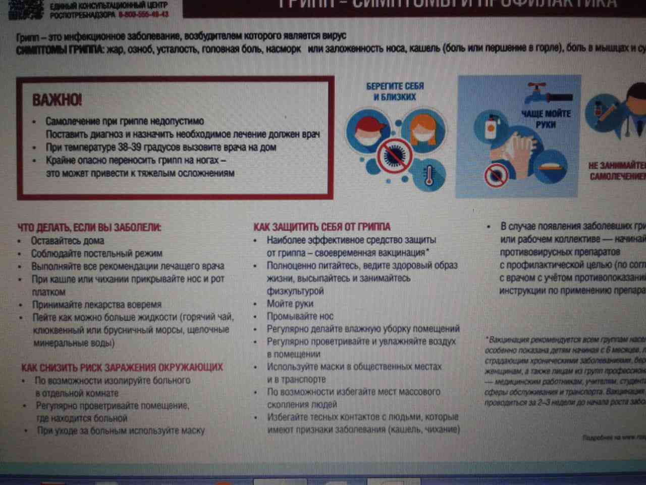 В соответствии с рекомендациями Федеральной службы по надзору в сфере защиты прав потребителей и благополучия человека во всех школах прошел единый урок «Здоровья». В проведении урока использовался информационный материал по профилактике гриппа, рекомендации при выборе антисептических средств и дезинфекции помещений, соблюдение гигиенических мер. Цель урока научить мерам безопасности в период пандемии коронавируса.