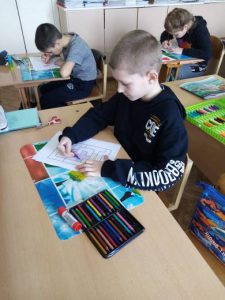 На занятие дети познакомились с историей создания игры — головоломки «Пентамино», цель которой развивать усидчивость, внимательность, сотрудничество. Изготовили из белого картона элементы для головоломки, раскрасили разноцветными красками элементами для обозначения латинского изображения буквы, форму которой она напоминает.