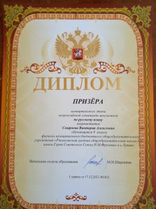 Подведены итоги муниципального этапа всероссийской олимпиады школьников по русскому языку в Ржаксинском районе. Обучающаяся 9 класса филиала МБОУ «Ржаксинская СОШ№1.им.Н.М.Фролова»в с.Лукино Смирнова Виктория награждена дипломом призёра.