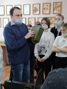 Проблема патриотического воспитания и гражданского становления подрастающего поколения — сегодня одна из актуальных задач государства, общества и образовательных учреждений нашей страны. 04.03.2022 года обучающиеся творческого объединения «Медиа – журналистика» МБОУ ДО ДДТ Ржаксинского района (руководитель Мухортова Г.Н.) посетили районный историко – краеведческий музей. В ходе экскурсии по музею нашему вниманию были представлены новые экспонаты в рамках проекта «Опасные дни Тамбовской области. Память живая и мертвая», посвященные периоду Гражданской войны. Среди эскпонатов можно увидеть предметы и образцы стрелкового оружия: это пулемет «максим» с коробом для хранения ленты с патронами, походная печка – буржуйка с медным чайником, лампа с традиционным зеленым абажуром, старинная печатная машинка (ундервуд). Очень интересно было посмотреть на киверную звезду образца 1909 года, на копию комплекта «Георгиевского банта» ( знак ордена святого Георгия Победоносца четырех степеней).