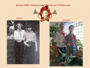 В рамках цикла мероприятий, посвящённых 100-летию со дня образования Всесоюзной пионерской организации имени В.И. Ленина, «Виват, пионерия!» Баннова Ирина приняла участие в фото — флешмобе «История пионерии» и повторила фотографию выпускницы нашей школы. Филиал МБОУ «Ржаксинская СОШ №1 им. Н. М. Фролова» в с.Лукино (кл.руководитель Леонова Ю.В.)