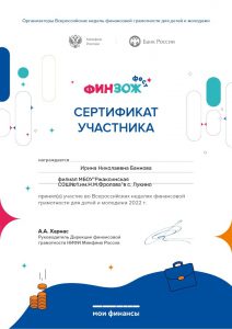 В России прошла «Неделя финансовой грамотности». В рамках акции ребята 8 класса нашей школы приняли активное участие в игре для школьников «ЗнатокФинЗОЖ» и получили сертификаты. В игре не было никаких вопросов из учебников – только то, что действительно важно знать про деньги в конкретных жизненных ситуациях! Быть финансово подкованным – это круто!!!