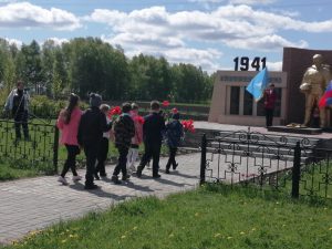 Ребята и учителя организованной группой прошли от здания школы до мемориала воинам-землякам, павшим в годы Великой Отечественной войны.