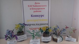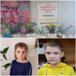 Частью фестиваля стала выставка «Вальс цветов», на которую было представлено 100 работ. В ней активное участие приняли и обучающиеся Дома детского творчества д/о «Бисероплетение», «ИЗО», под руководством педагогов дополнительного образования Т.Н.Аппоротовой и В.С.Федулеевой. Она была посвящена любимым цветам Чайковского — ландышам. Цветы были выполнены из разных материалов. Особое внимание привлекали чудесные, нежные цветы из бисера, выполненные ребятами младшего школьного возраста- Кошелевой Ариной, Вотановской Кариной, Гусевым Сергеем, Жильцовыми Марией и Софьей, Малиной Ксенией.