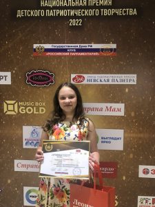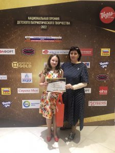 Обучающаяся творческого объединения «Рукодельница» Дома детского творчества города Котовска Степанова Софья со своим руководителем- педагогом дополнительного образования Стрюковой Наталией Валерьевной приняли участие в церемонии вручения Национальной Премии детского патриотического творчества. Это знаменательное событие проходило в День защиты детей 1 июня в пятый раз в Москве в Vegas City Hall.