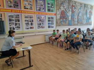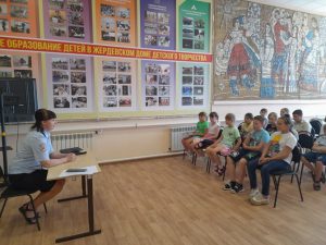 В течение лагерной смены у нас в гостях побывали сотрудники правоохранительных органов, которые рассказали детям о том, что такое правонарушение, какие виды правонарушений чаще всего совершают подростки, и как уберечь себя от опасного шага. Со стороны детей было задано много вопросов, на которые они получили исчерпывающие ответы компетентных лиц.