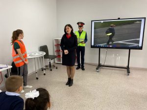 В гостях у юных пешеходов была инспектор по пропаганде БДД ОГИБДД ОМВД по Сосновскому району Мария Рожкова, она поздравила ребят и вручила каждому «Удостоверение юного пешехода» и светоотражающий стикер. В конце мероприятия учитель ОБЖ Михаил Казьмин объяснил детям, для чего и как используются светоотражающие элементы.