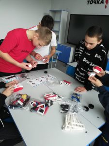 Нами были рассмотрены виды простых механизмов: рычажные, кулачковые. Схемы соединения, принцип действия, область применения. Приступили к сборке базовой модели робота из деталей конструктора Lego.