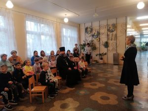 О фестивале и важности работы Муниципального центра говорили выступающие на открытии выставки: иерей Иоанн Масягин, Марченко Р.А.-заместитель директора «ДДТ», Клюкина Н.А.- руководитель МЦ ДНВ «ДДТ». На самые главные участники мероприятия это, конечно, дети! Обучающиеся группы кратковременного пребывания «Домовёнок» получили благословение батюшки и украсили мероприятие песенками об осени.