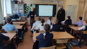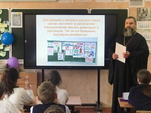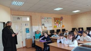 Почему люди ругаются матом? Почему нельзя ругаться? На эти и другие вопросы учащиеся 5 «А» класса МБОУ «СОШ №3 с УИОП» получили ответы в ходе встречи с настоятелем Благовещенского храма священником Иоанном Масягиным и руководителем Муниципального центра духовно-нравственного воспитания «Дома детского творчества» Ниной Анатольевной Клюкиной.