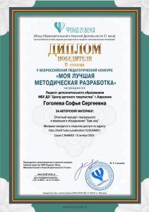 Педагоги МБУ ДО «Центр детского творчества» города Кирсанова поучаствовали в педагогическом конкурсе «Моя лучшая методическая разработка». По результатам конкурса были награждены дипломами
