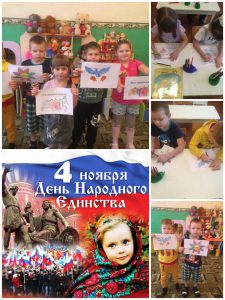 Не так давно в нашем календаре появился праздник — День народного единства, который отмечается 4 ноября. В преддверии этого праздника в театральном объединении «Театр маленького актера» была проведена беседа с детьми об истории возникновения праздника. Педагог дополнительного образования Л.В.Плешакова в увлекательной и интересной форме рассказала,    что россияне, принадлежащие к разным социальным группам, национальностям, вероисповеданиям — это единый народ с общей исторической судьбой и одним будущим. Что очень важно укреплять согласие народа и гражданскую солидарность, ведь именно в этом заключается залог благополучия нашей Родины. После беседы дети разукрасили  рисунки по теме « День народного единства».