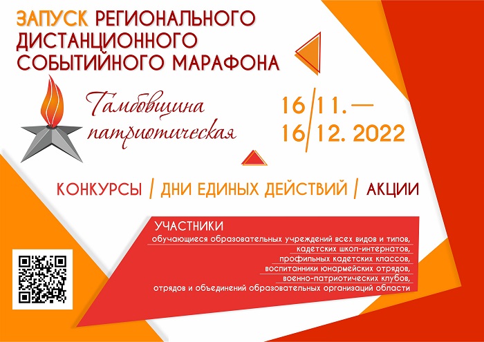 16 ноября 2022 года дан старт региональному дистанционному событийному марафону «Тамбовщина патриотическая». Начинает марафон конкурс плакатов «Моя земля, моя Тамбовщина» (к 85-летию Тамбовской области).