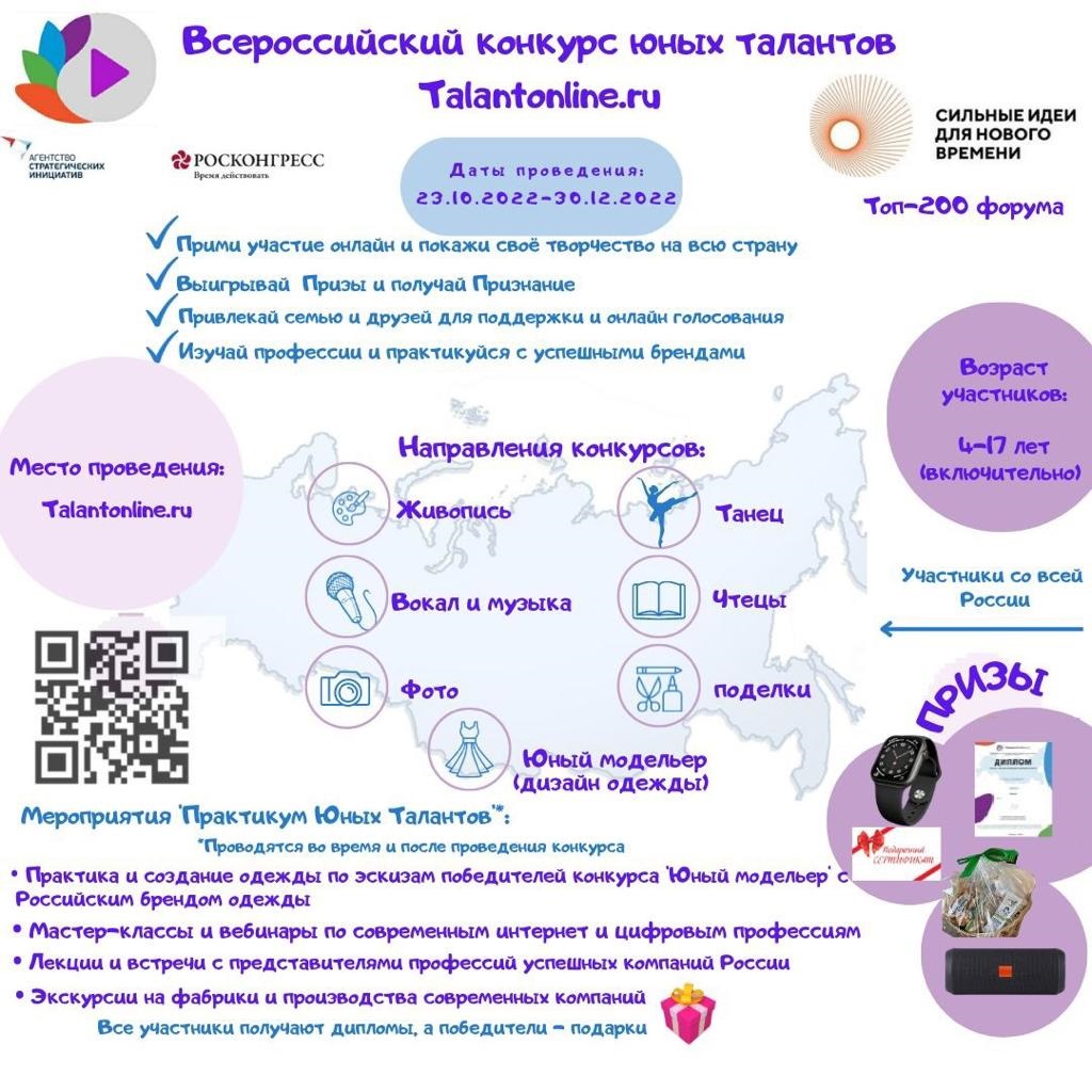 Прими участие во Всероссийском конкурсе юных талантов Talantonline.ru!
