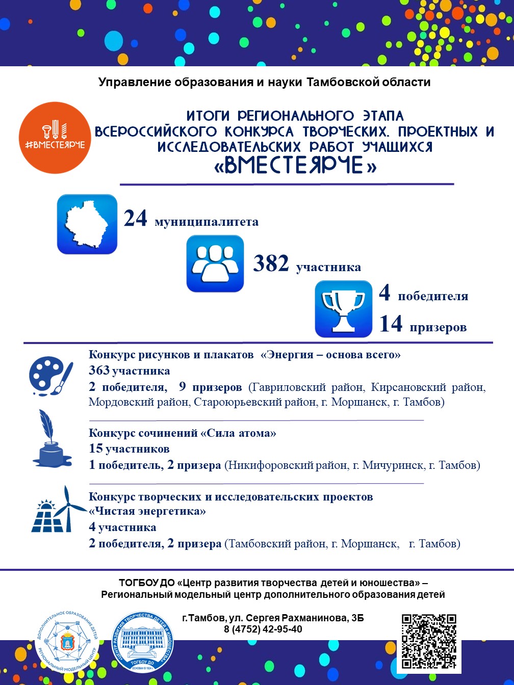 Региональный этап Всероссийского конкурса творческих, проектных и исследовательских работ учащихся «#ВместеЯрче» проводился в период с сентября по ноябрь 2022 года в рамках Всероссийского фестиваля экологии и энергосбережения #ВместеЯрче-2022 и был направлен на повышение исследовательского и познавательного интереса к теме энергосбережения, формирование у детей энергосберегающей модели поведения, ориентированной на бережное и ответственное отношение к энергетическим и природным ресурсам.