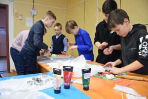 Елена Анатольевна Метлина предложила ребятам сделать елочные игрушки из соленого теста. Мальчики с удовольствием работали и у них получились замечательные игрушки!