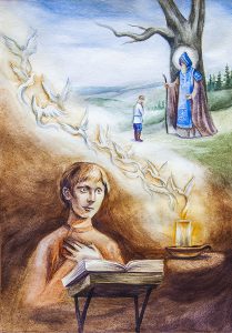 2-е место – Шатилова София, 9 лет, обучающаяся Дома детского творчества, за работу «Юность преподобного Сергия Радонежского», педагог Сафронова Лилия Витальевна;