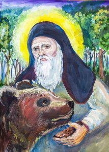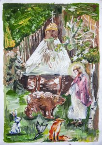 3-е место – Метлина Александра, 12 лет, обучающаяся Дома детского творчества, за работу «Преподобный Сергий Радонежский и медведь», педагог Ридель Виктория Альбертовна;