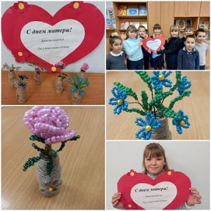 Юные мастера д/о «Бисероплетение» и «Волшебная мастерская» педагога дополнительного образования Т.Н. Аппоротовой решили, что этот праздник- прекрасный повод выразить свою любовь и глубокую благодарность самому главному в нашей жизни человеку- маме. Они подготовили поздравления и с радостью и удовольствием изготовили прекрасные букеты из бисера.