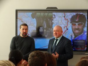 На встрече Александр говорил о городах, странах и континентах, которые он проехал на велосипеде. Рассказал о самых необычных встреченных им видах транспорта и редких животных, которых ему довелось увидеть, об удивительных пустынях и подземных пещерах, в которых удалось побывать. Он показал коллекцию фотографий из своих путешествий. Продемонстрировал знания языков, которые выучил, общаясь с людьми разных национальностей. И конечно же, ответил на все интересующие слушателей вопросы. Самыми любознательными оказались обучающиеся 1-6 классов. Их интересовало, чем питается в дороге велосипедист, где спит, на каком языке общается с жителями других стран и на сколько килограммов может похудеть за одно путешествие. Ребята задавали вопросы о велосипеде и специальных устройствах, которые помогают преодолеть длинные маршруты. Общение с Александром Осиповым подарило обучающимся массу впечатлений и хорошее настроение.