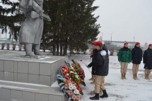 Ребята из юнармейского отряда «Наследники славы» имени Геннадия Спицына возложили цветы к памятнику воину-освободителю.