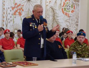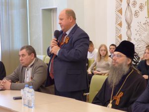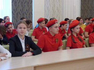 В актуальном разговоре на тему патриотизма, героического прошлого и настоящего нашей страны с юнармейцами и представителями волонтёрского движения говорили руководители района Сергей Николаевич Ефанов и Олег Владимирович Орлов, епископ Мичуринский и Моршанский Гермоген, ветераны Вооруженных Сил, учащиеся и педагоги образовательных учреждений района.