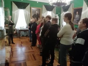 Знакомство с экспозицией музея включает рассказ о выдающемся русском ученом, социологе, политологе, философе, историке Б. Н. Чичерине, о традициях воспитания, складывавшихся на протяжении нескольких поколений рода Чичериных. Дети узнали о детских годах Бориса Николаевича, о родителях и системе нравственных ценностей, сложившихся в семье, а также об увлечении ребят домашним музицированием на различных инструментах, театром, литературой, языками.