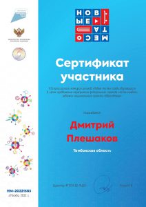 Обучающийся МБОУ ДО Бондарского ДДТ Дмитрий Плешаков получил сертификат участника Всероссийского конкурса.