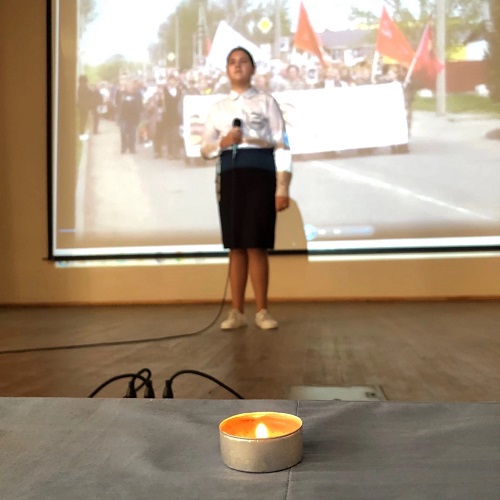 Ведущие мероприятия под чтение с патриотических стихотворений зажгли памятные свечи, а зал почтил минутой молчания всех Неизвестных солдат страны.