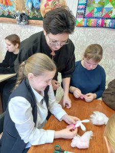 Модули «Декоративно-прикладное творчество» и «Традиционные ремесла и промыслы» были представлены в форме мастер-классов: «Народная кукла» и «Лоскутное шитьё». Обучающиеся продолжили знакомство с традиционными ремеслами и технологиями декоративно-прикладного творчества и получили задание изготовить изделия в соответствии с выбранным мастер-классом.