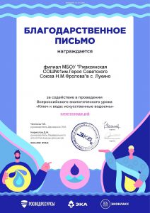 Филиал МБОУ « Ржаксинская сош №1 им.Н.М.Фролова» в с.Лукино . Обучающиеся 8-9 классов приняли активное участие в экологическом уроке «Ключ к воде».