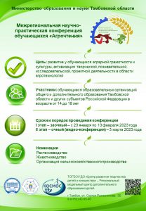 Конференция проводится с 23 января по 3 марта 2023 года в целях развития у обучающихся аграрной грамотности и культуры, активизации творческой, познавательной, исследовательской и проектной деятельности в области агротехнологий.