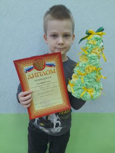 за 3 место в номинации » Лучшая елочка» в возрастной категории 9-10 лет — Тимофеев Тимур (творческое объединение «Творческая мастерская, педагог Погорелова Е.Н.).