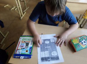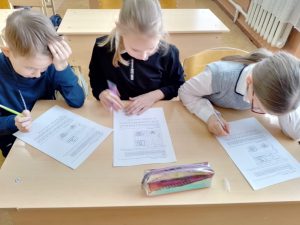 После подвижных упражнений, класс был произвольным образом разделен на две группы, каждая группа получила задание. Необходимо было разгадать шифровки. Для этого необходимо было понять, как их расшифровать. Победила команда, которая быстрее выполнила свое задание. Зашифрованы были пословицы и поговорки о дружбе и добре, например: «Легче друга потерять, чем найти» и т.д. Еще было задание дорисовать предмет с помощью специального шифра. При выполнении данных заданий дети учились слушать мнение других, находить правильное.