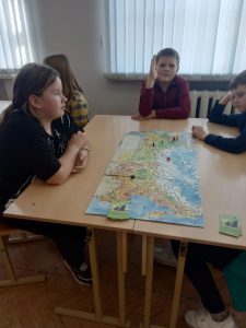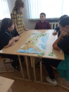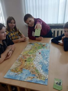 Это было необычное мероприятие, игра — путешествие. Цель мероприятия — формирование гражданско-патриотического сознания, нравственных позиций и самоопределения на основе расширения и систематизации общественно значимых представлений ребёнка о нашей Родине – России. В начале игры был определён маршрут путешествия на карте России. Путешествуя по карте России, дети получали карточки с различными вопросами в области географии, искусства, литературы, истории России. Передвижение по маршруту осуществлялось при помощи фишек; право передвинуться предоставлялось только после правильного ответа на вопрос из выбранной карточки и на количество выпавших на кубике очков. Во время игры обучающиеся были активны, смекалисты, сообразительны и стремились быть лидерами.