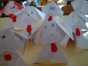 В игровой форме дети знакомятся с видами бумаги и учатся разным техникам работы с ней. Постепенно от простых поделок, переходят к освоению сложных изделий. Все поделки функциональны: ими можно играть, их можно использовать в быту, можно подарить друзьям и родным.