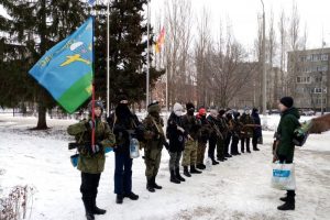 По окрестностям Первомайского пешим маршем юнармейцы в военном снаряжении и с флагом ВДВ прошли около пяти километров.