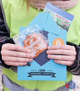 Ребятами из отрядов ЮИД были изготовлены поздравительные открытки «Безопасные рубашки» с памятками для водителей. Участники акции посетили временный пост ГАИ и вручили водителям открытки с поздравлениями, пожелали безопасных дорог, соблюдения скоростного режима и счастливого пути!