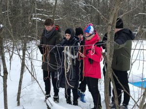 - Вязка узлов: проводник-восьмёрка, стремя, ткацкий, штык, брамшкотовый, схватывающий