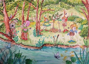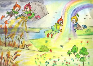 Конкурсанты представили рисунки с изображением сказочных героев Эколят, которые приходят на помощь природе в той или иной ситуации: участвуют в посадке деревьев, убирают мусор, ухаживают за растениями и животными, помогают зверям и птицам, собирают раздельно бытовые отходы и др.