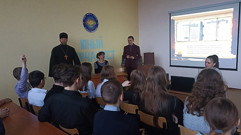 Сегодня в МБОУДО «Центр детского творчества» состоялось мероприятие посвященное Дню православной книги, на котором присутствовал благочинный Сосновского благочиннического округа иерей Алексей Зубков, Машкова Лариса Михайловна — заведующая отделом методической работы, комплектования и обработки литературы МБУК «Межпоселенческая центральная библиотека» Сосновского района, а также исполняющий обязанности директора МБОУДО «Центр детского творчества», руководитель муниципального центра духовно-нравственного воспитания детей и молодежи Сосновского района Машков Роман Владимирович, которые говорили с обучающимися МБОУ Сосновской СОШ №1 и МБОУ Сосновской СОШ №2 им. И.Ю. Уланова, на тему «Книга, открытая всем».