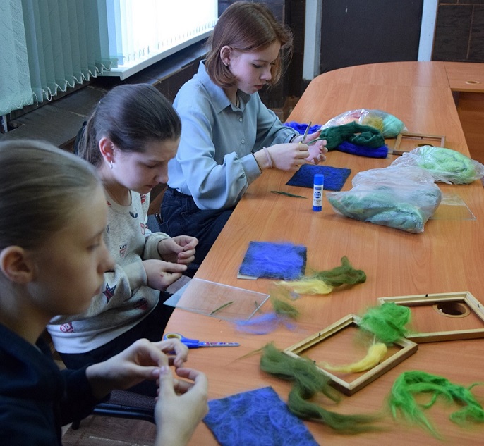 А практическая часть занятия принесла радость от создания собственных картин в технике «Шерстяная акварель»