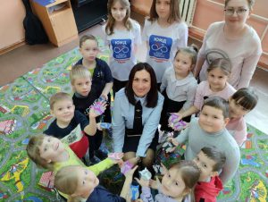 Юлия Александровна Барановская провела беседу с детьми по правилам безопасного поведения на дорогах, познакомила с правилами передвижения в темное время суток, назначением световозвращающих элементов.