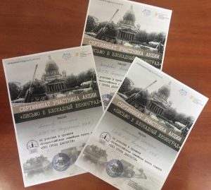 Сертификаты участников акции получили Бирюков Дмитрий, Плешаков Дмитрий и Захарова Татьяна.