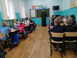 Духовно – нравственное воспитание подрастающего поколения средствами внеурочной деятельности всегда актуально. Здесь каждый учитель может построить свою работу самыми разнообразными методами и способами. Один из таких способов — привлечение представителей Ржаксинского благочиния на уроки, классные часы, внеурочную деятельность и так далее. Такого рода мероприятия с удовольствием посещает не только настоятель храма Покрова Пресвятой Богородицы иерей Алексий (Насонов), но и частыми гостями стали представители Уваровской епархии. Так, недавно 4 класс Ржасинской СОШ №2 посетил монах Дамаскин (Киреев) , который затронул такие вопросы как о добре и зле, о семейных ценностях, о Боге в душе человека. Дети задавали самые разные вопросы, внимательно слушали ответы на них, шутили. А в первых классах этой же школы прошла встреча с руководителем отдела религиозного образования и катехизации Уваровской епархии о. Димитрием Овсянниковым, с которым ребята говорили о любви и заботе к близким, о дружбе и взаимопомощи. А в третьих классах школьники смогли прикоснуться к зернам истины через поучительные истории, интересные факты и немного юмора.