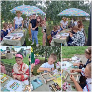 Татьяна Аппоротова собрала вокруг себя детей на мастер-класс по изготовлению фенечек из бисера. От желающих сплести себе украшение не было отбоя, участвовали не только девочки, но и представители сильного пола.