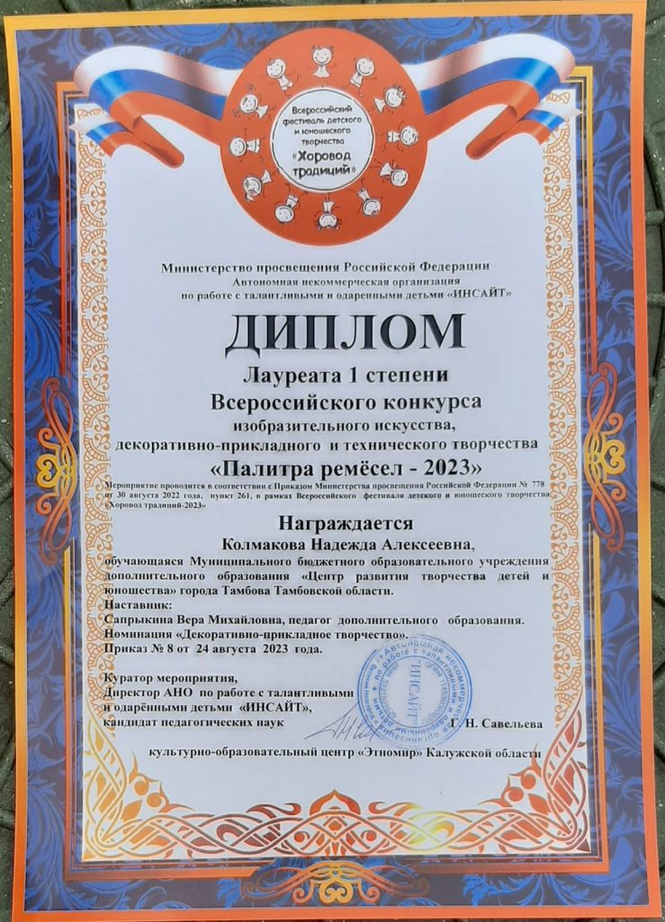 Учащаяся студии «Кружевница» МБОУ ДО «Центр развития творчества детей и юношества» Надежда Колмакова стала абсолютной победительницей ОБОИХ всероссийских конкурсов, не оставив шансов своим конкурентам по творчеству.