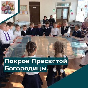 Ребята приняли участие в русских народных играх, водили хоровод, отправились в путешествие в Грецию к истокам возникновения любимого русскими людьми праздника Покров. Они услышали молитву на греческом языке и поиграли в греческую игру. Успели сходить в «лес по грибы», «напечь пирогов» и «погулять» на русской свадьбе. Закончилось мероприятие построением восхитительной покровской снежинки, получением благословения и сладких подарков от батюшки, ну и фотографией на память.
