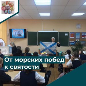 Не выходя из школы 16 октября, учащимся 6 «Г» класса МБОУ «СОШ №3 с УИОП» (классный руководитель И.А. Кормышева) удалось отправиться в настоящее морское путешествие, связанное с местами жизни и деятельности непобедимого святого и праведного адмирала Ф.Ф.Ушакова.